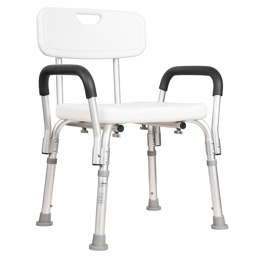 Hight adjustable aluminium shower and bath chair with armrests and backrest