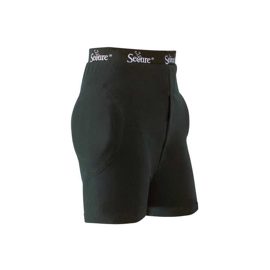 Mens secure hip protector pants are a suitable shape for continence aids to be worn.